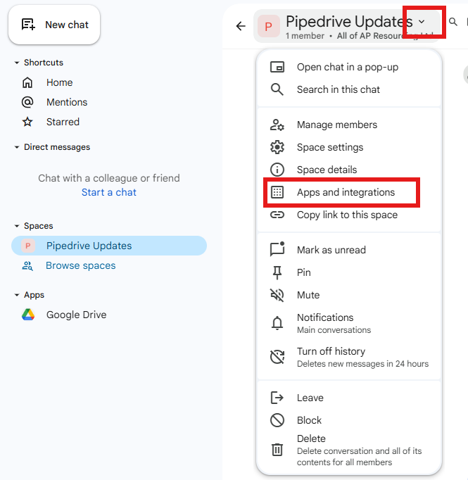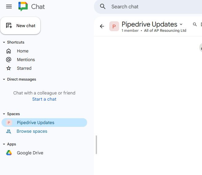 Click the correct Chat space on the left-hand side (or create a new space then click it)