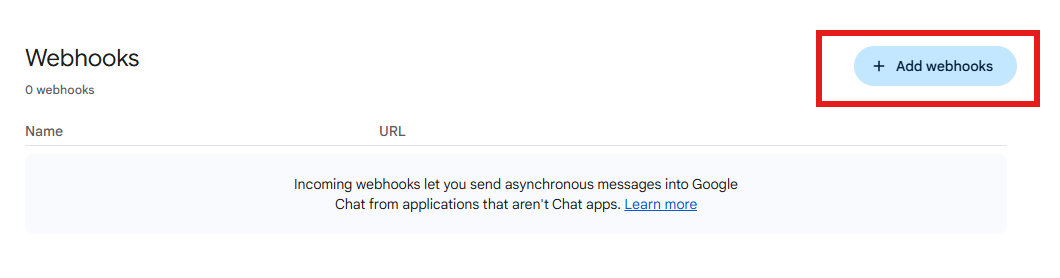 At the bottom of the page, click "Add webhooks"