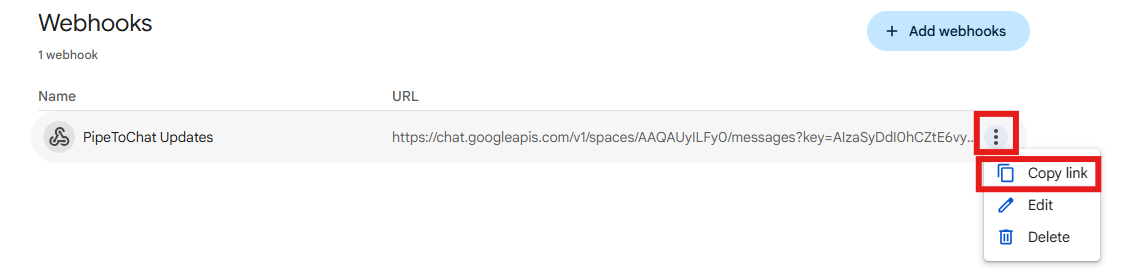 The most complex part of getting set up with PipeToChat is getting what's called the Webhook endpoint from Google Chat.